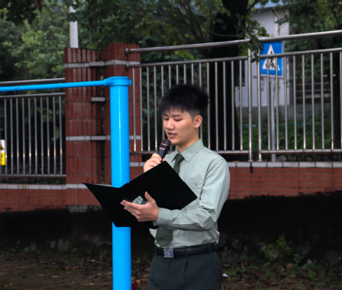 退役士兵学生代表林康琳进行了国旗下讲话。林康琳讲述了自己的军旅生活以及退役后校园生活的转变,号召同学们磨砺定力、追梦青春,用实际行动书写属于自己的青春篇章。