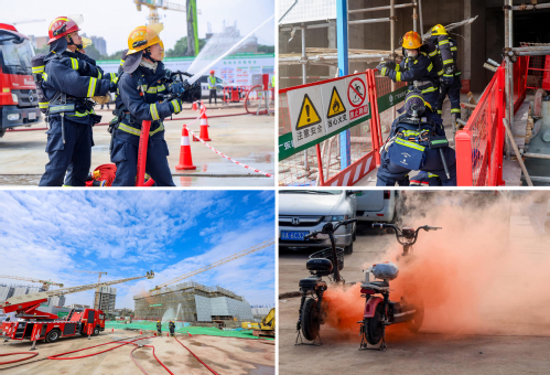本次演练聚焦建筑施工领域常见消防安全风险项目。演练过程中,模拟场景依次展开,现场人员按照预案分工开展伤员转运、伤口包扎等急救操作,灭火组、疏散组、警戒组协同配合,使用消防器材快速扑灭火源,引导现场人员有序撤离至安全区域,整个过程反应迅速、操作规范、衔接顺畅。