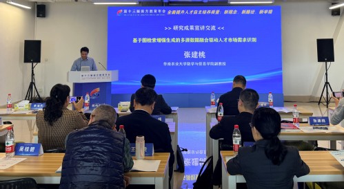 张建桃受邀做“基于图检索增强生成的多源数据融合驱动人才市场需求识别”的专题报告,系统介绍了其研究团队构建的融合政策文本、行业报告与招聘数据的多元数据融合模型,该模型通过整合政策文本、行业报告、招聘数据等多源信息,精准识别农业领域人才需求动态,为高校优化人才培养目标、推进课程体系改革与跨学科建设提供了科学依据和实践指导。同时,利用图检索增强生成技术进行信息抽取与智能分析,识别农业等领域人才缺口。发现当前存在产教协同薄弱、资源配置低效、职业吸引力不足、多维能力赤字与供需失衡五大矛盾,倡导从“课程叠加”走向“能力融合”的课程改革。